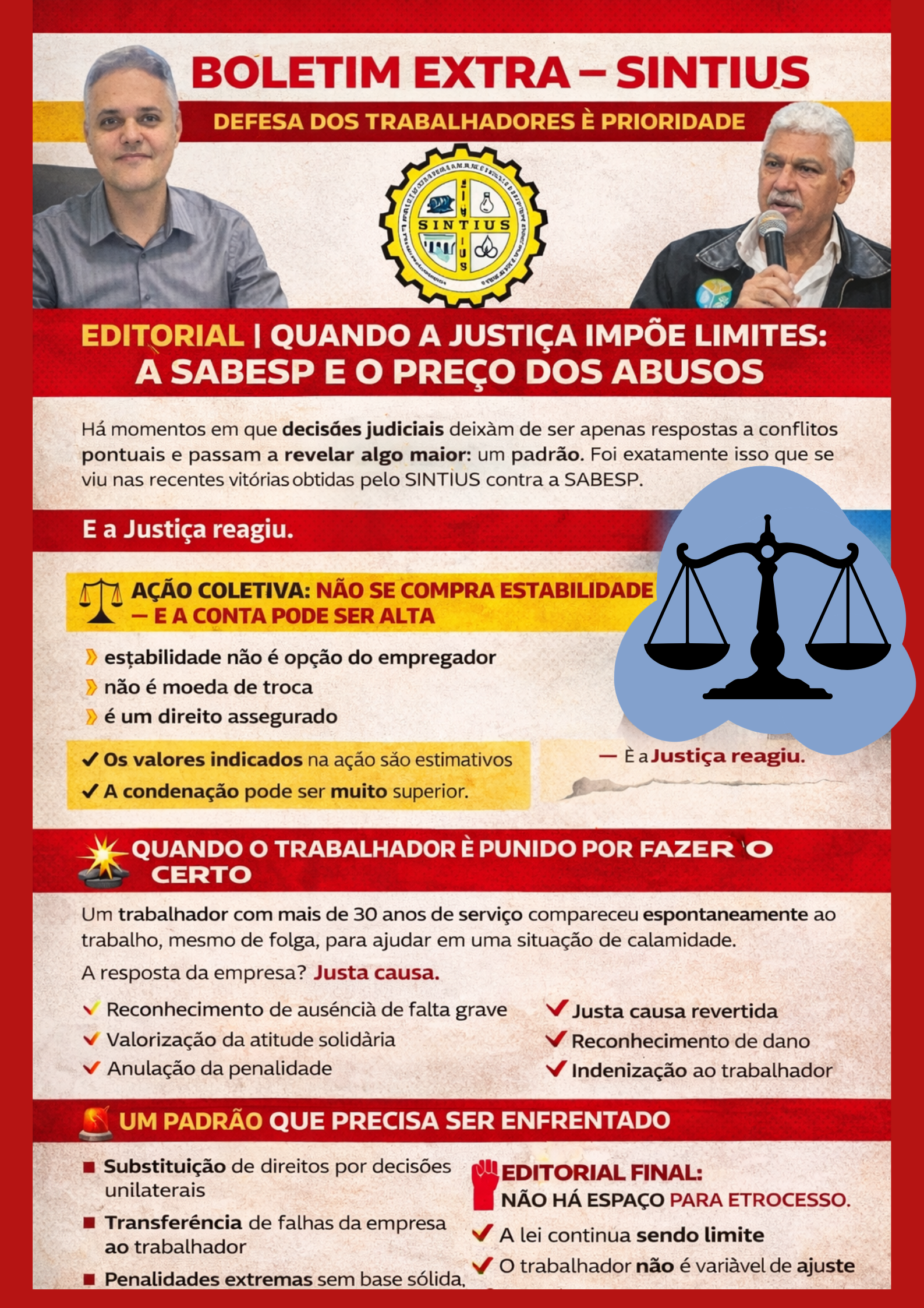 Há momentos em que decisões judiciais deixam de ser apenas respostas a conflitos pontuais e passam a revelar algo maior: um padrão. Foi exatamente isso que se viu nas recentes vitórias obtidas pelo SINTIUS contra a SABESP.