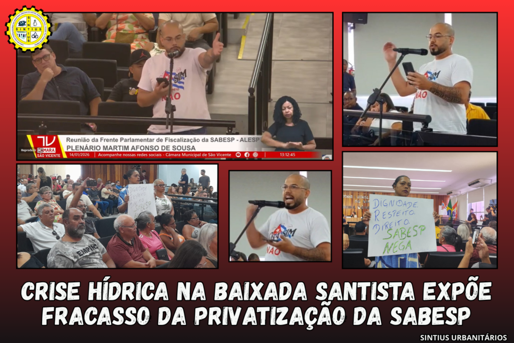 14 jan 2026 Matérias e Notícias Crise hídrica na Baixada Santista expõe fracasso da privatização da Sabesp 14/01/2026 Autor Comunicação Veja mais