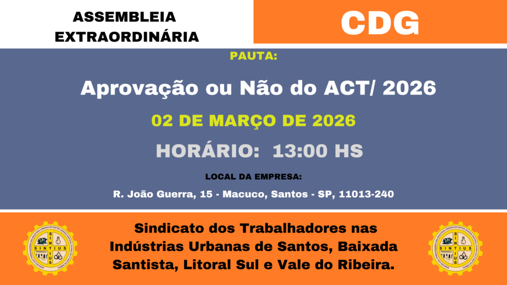 25 fev 2026 Matérias e Notícias Assembleia extraordinária: CDG – ACT/2026 25/02/2026 Autor Comunicação Veja mais