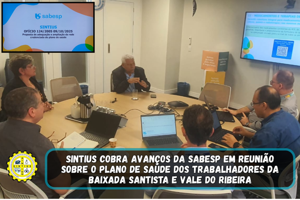 15 out 2025 Matérias e Notícias SINTIUS cobra avanços da Sabesp em reunião sobre o plano de saúde dos trabalhadores da Baixada Santista e Vale do Ribeira 15/10/2025 Autor Comunicação Veja mais