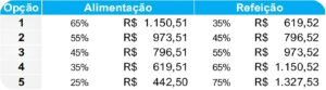 Com o objetivo de oferecer maior flexibilidade, a empresa permitirá que cada funcionário escolha entre cinco opções diferentes de divisão do montante total de R$ 1.770,03. As proporções variam entre 65% para alimentação e 35% para refeição, até 25% para alimentação e 75% para refeição, conforme a preferência de cada um. Para realizar a mudança, é necessário preencher o formulário até o dia 7 de novembro. O link para o formulário está disponível no comunicado oficial, e também é possível acessar por meio do QR Code.