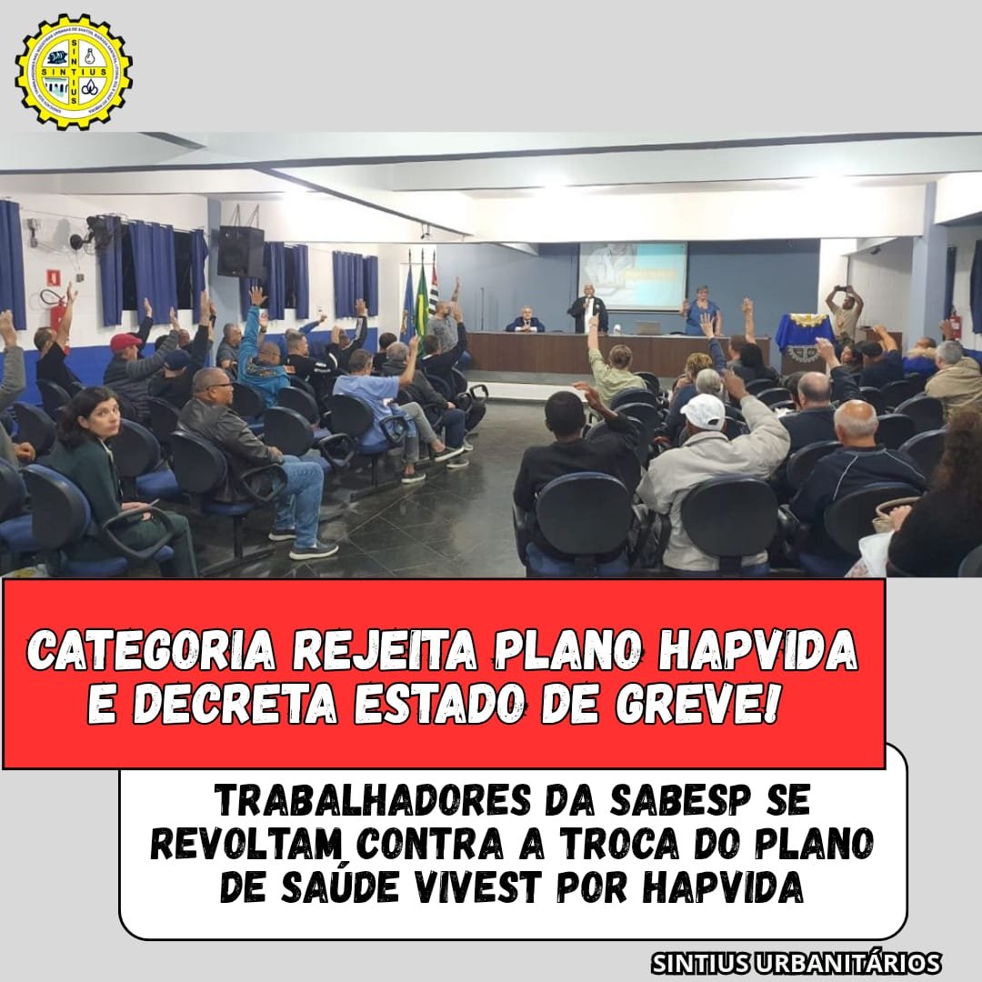 Por unanimidade, os trabalhadores da Sabesp rejeitaram a decisão da empresa de trocar o plano de saúde da Vivest pelo Hapvida. Esse foi o posicionamento da categoria em assembleia realizada pela Diretoria do Sindicato dos Urbanitários (Sintius), na noite da última quarta-feira, dia 8, na sede da instituição.
